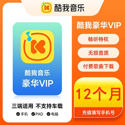 【账号直充】酷我音乐车载VIP会员『12个月』接口直充丨立即到账丨24小时全天秒单!