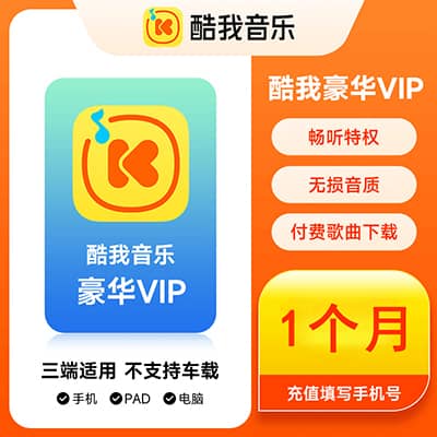 【账号直充】酷我音乐车载VIP会员『1个月』接口直充丨立即到账丨24小时全天秒单!