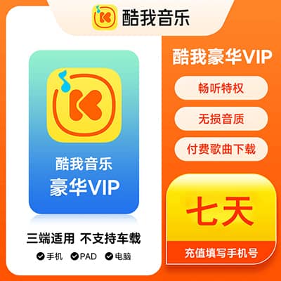【账号直充】酷我音乐豪华VIP会员『7天』接口直充丨立即到账丨24小时全天秒单!